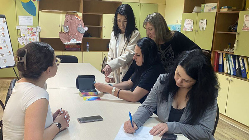 От своя страна Никол Николова представи опознавателните карти „ПОПИТАЙ И ОТГОВОРИ“, създадени от Изабел Овчарова. От името на АСМБ тя дари изданието в полза на потребителите, които посещават услугите в центровете. Картите са насочени към стимулиране на комуникацията, социалните умения и емоционалното изразяване.