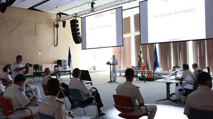 В 14.00 часа започна конференция в Конгресния център на пристанище Бургас преди излизане на корабите на море, в която участваха офицерите от щаба и командирите на кораби.