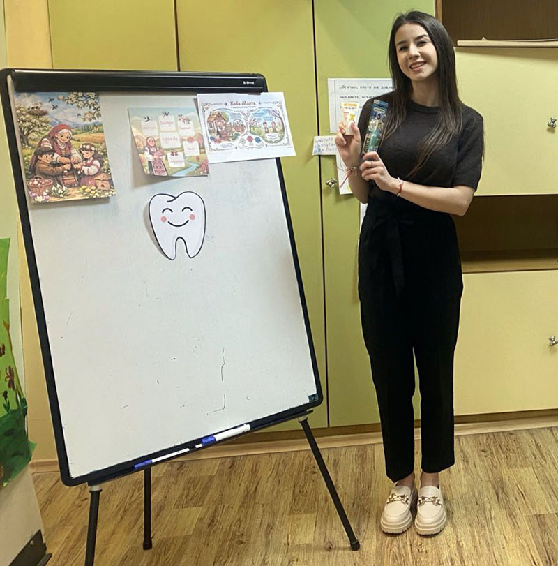 Специален гост на събитието беше студентка по дентална медицина четвърти курс в Медицински университет - Варна, проф. д-р Параскев Стоянов - Грета Стайкова, която по достъпен и интересен начин разясни на децата защо е важно да поддържат добра устна хигиена. Тя обясни какво представляват кариесите, как се образуват и как правилната грижа за зъбите може да предотврати появата им. Децата научиха колко често трябва да мият зъбите си, колко време да продължава миенето и защо редовните профилактични прегледи при стоматолог са важни.