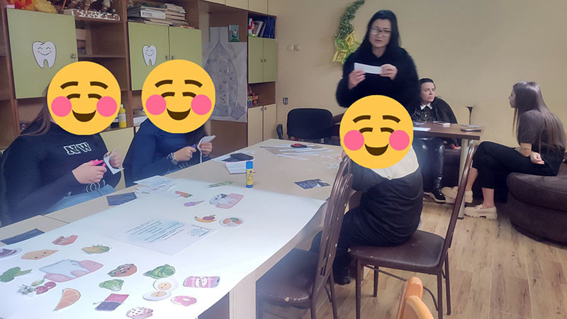 След образователната част беше проведено занимание под формата на игра. Децата трябваше да групират различни храни в две категории – „полезни за зъбите“ и „вредни за зъбите“. Те с ентусиазъм обсъждаха кои храни съдържат много захар и могат да причинят кариеси, и кои подпомагат здравината на зъбите – като млечни продукти, плодове и зеленчуци. Играта затвърди наученото по забавен и интерактивен начин.