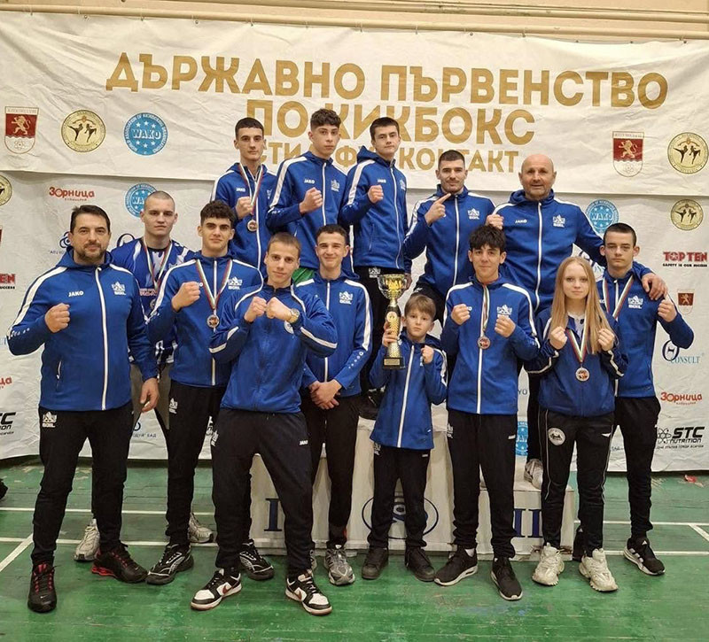 Варненският тим по кикбокс се завръща от държавното първенство, което се проведе от 30 януари до 1 февруари в Козлодуй, с общо 24 отличия – 11 златни, 7 сребърни и 6 бронзови медала.