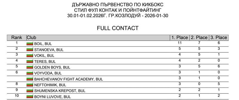 СКБИ “БОИЛ” за пореден път спечели Държавната титла в стил "фул контакт", като заслужено завоюва и ОТБОРНАТА купа на България след изключително силно представяне.