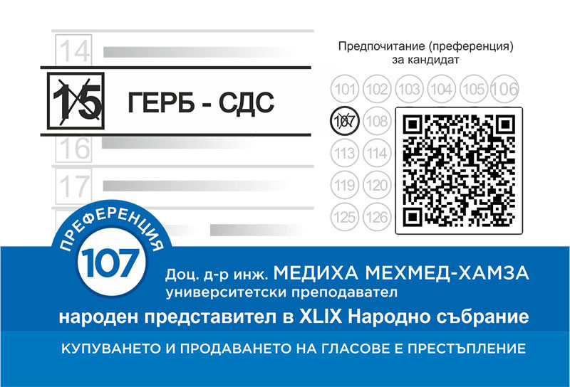 Основните аргументи за подкрепа на коалицията ГЕРБ-СДС с №15 и преференция 107:
